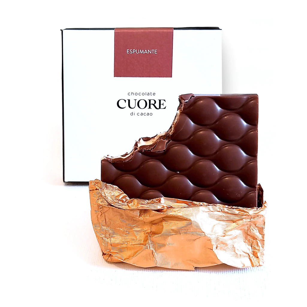 Barra de chocolate ao leite com recheio cremoso de Espumante.